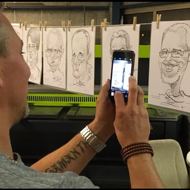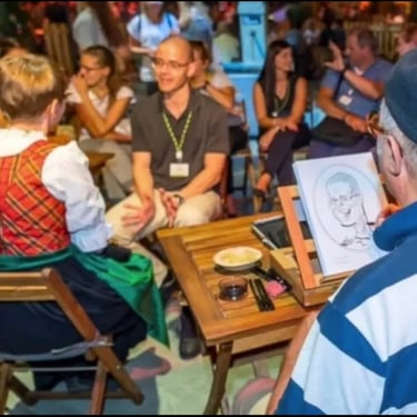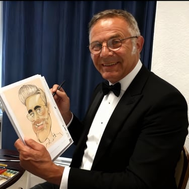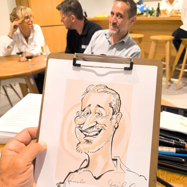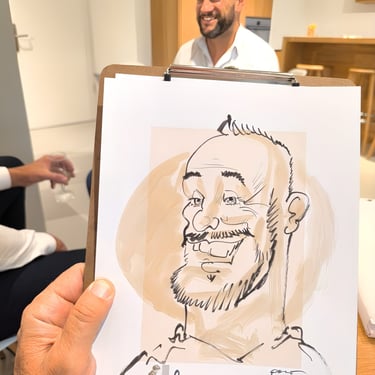 This is not about implementing your concepts, but about Leonardo’s own artistic signature and spectacular live performance. Leonardo draws lightning-fast, charmingly, and with refined humor. Quick-fire caricatures & unique edible art using chocolate, coffee, perfume & wine.